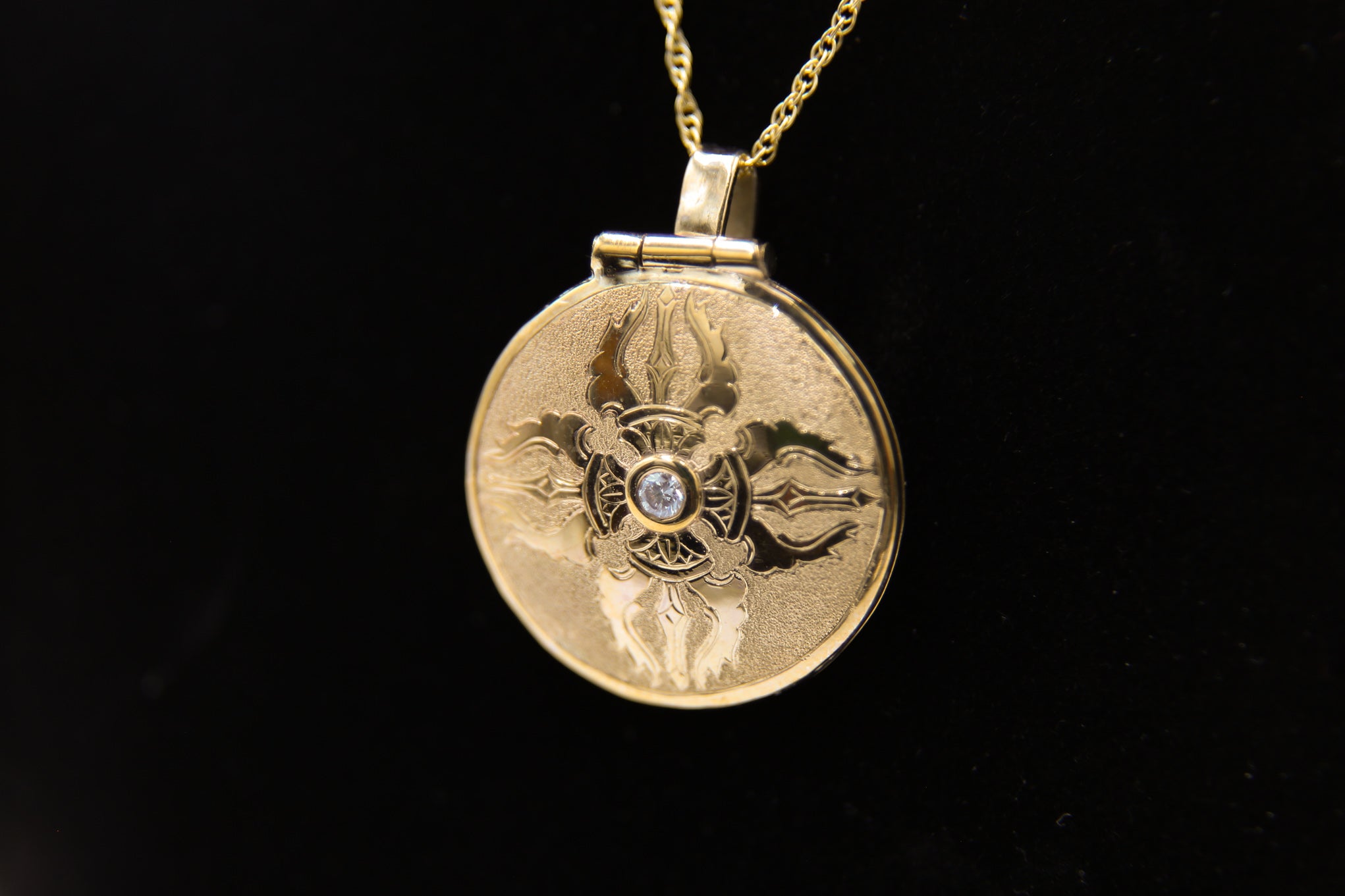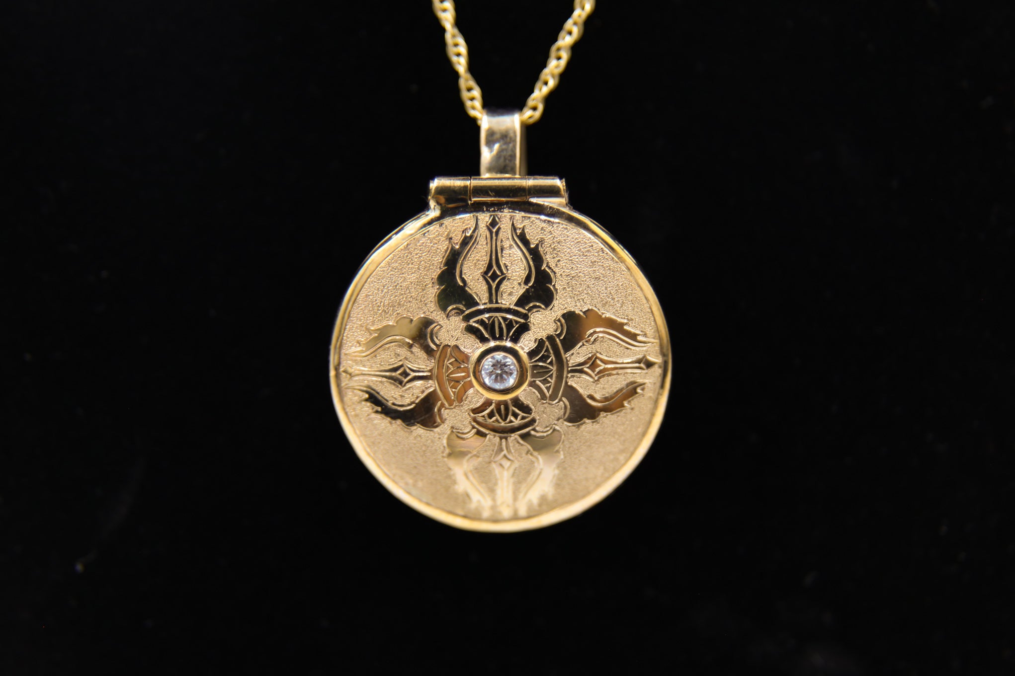Double Vajra Locket - 9K Gold w/diamond