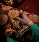 Called khwa chwe-gu, this stage completes the statue. The face is painted using melted gold, with poster colors used to define the eyes and lips.